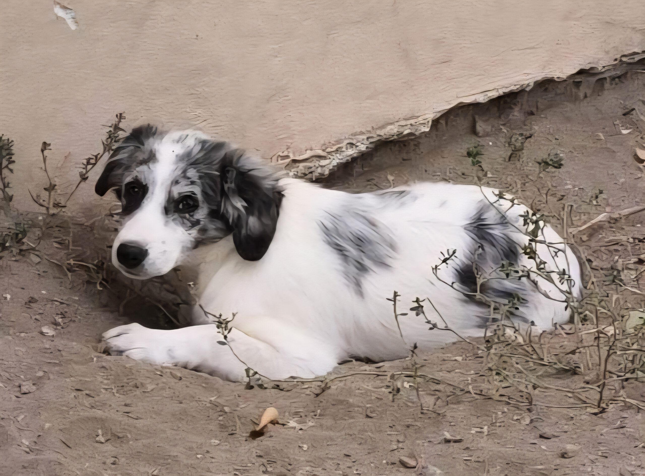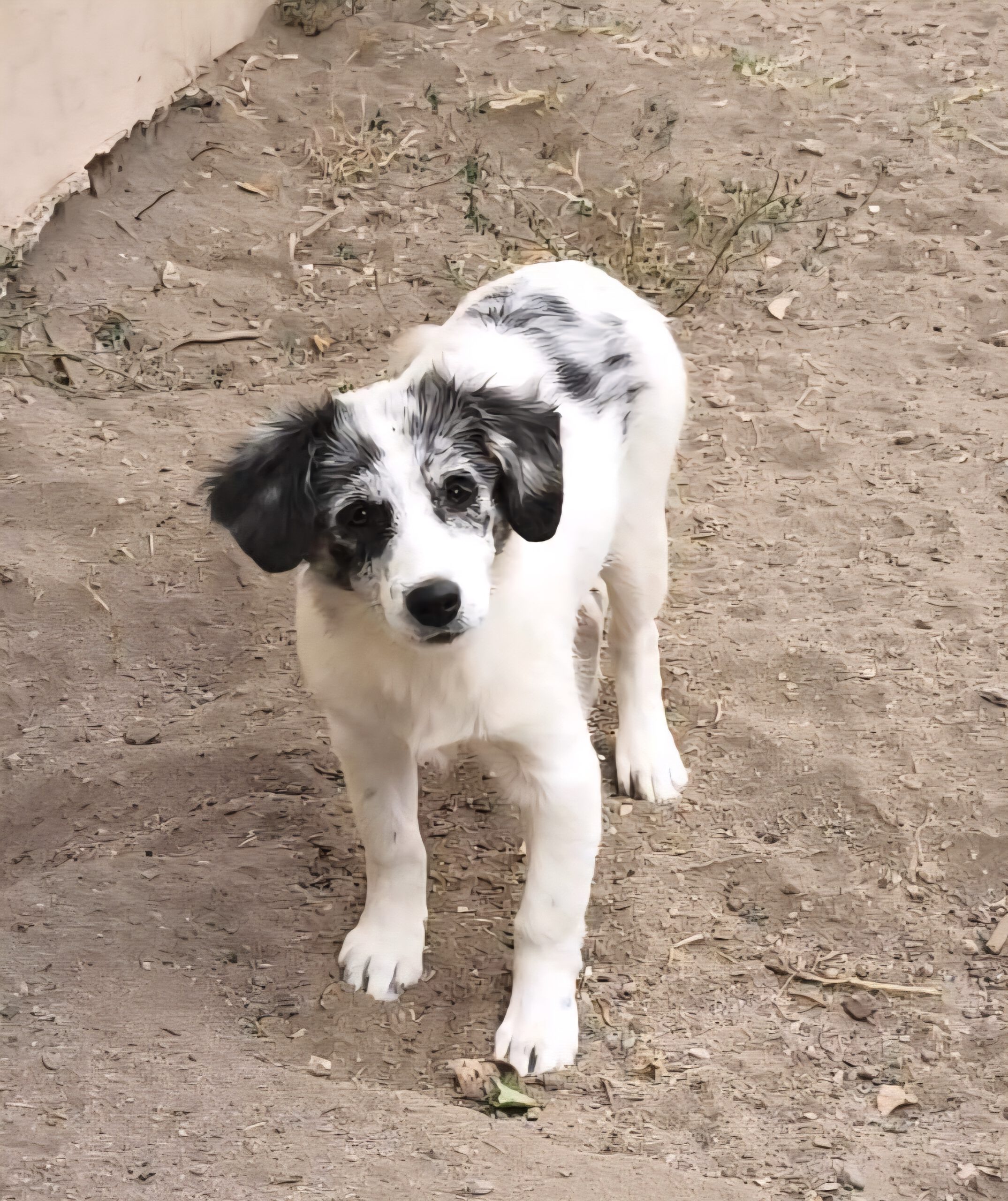 Malou lebt zur Zeit, zusammen mit vier Welpengeschwistern, ihrer Mama und weiteren erwachsenen Hunden auf einem privaten Terrain bei Herrn Nikolaus, einem fast 80jährigen Mann, welcher sie sehr gut versorgt.